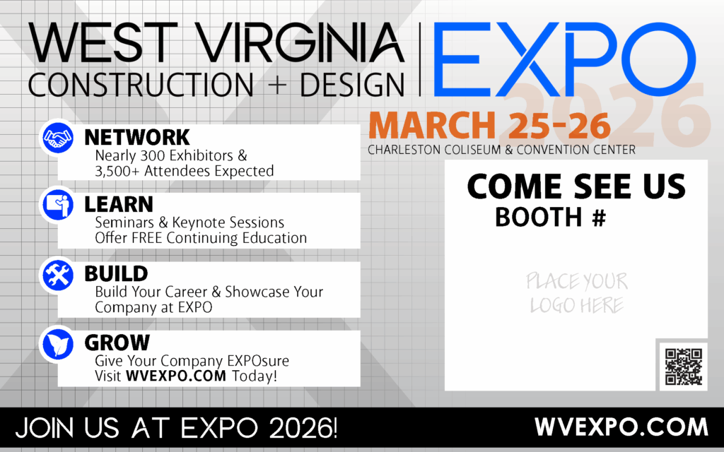 Charleston, West Virginia – The 47th annual West Virginia Construction + Design EXPO will take place on March 25-26, 2026, at the Charleston Coliseum and Convention Center. This premier event is expected to attract nearly 4,000 attendees and feature close to 300 exhibitors, dozens of continuing education seminars, and a host of other top-tier industry activities.